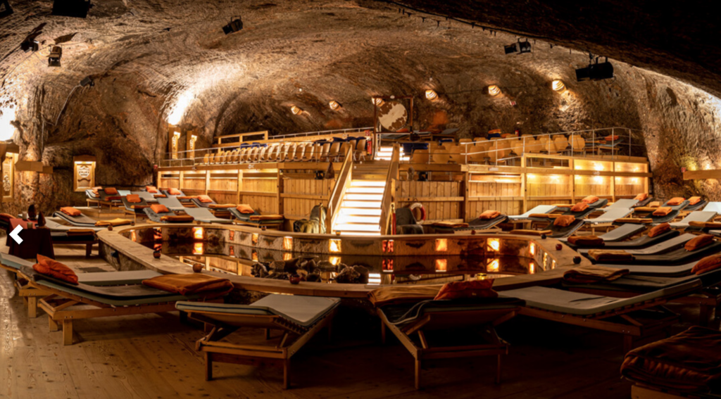 Der Heilstollen liegt rund 800 Meter tief im Berg und ist von Millionen Tonnen 260 Millionen Jahre alten Natursalzes umgeben. Ein Solebecken mit einem leise plätschernden Springbrunnen sorgt für eine Luftfeuchtigkeit von 85 Prozent – echtes Meeresklima unter Tage. Wer Hausschuhe anzieht, sich auf eine der bereitgestellten Liegen legt, eine Wärmflasche annimmt und die Augen schließt, versinkt schnell in tiefer Entspannung. Die salzhaltige Luft soll nachweislich bei Asthma, Bronchitis, Heuschnupfen, Allergien und anderen Atemwegserkrankungen lindern. Neben einfachen Ruhesitzungen gibt es spezielle Programme mit tibetischen Klangschalen, aktiver Atemtherapie oder – ganz für die Kleinen – Märchenerzählungen. Voranmeldung ist zwingend erforderlich.