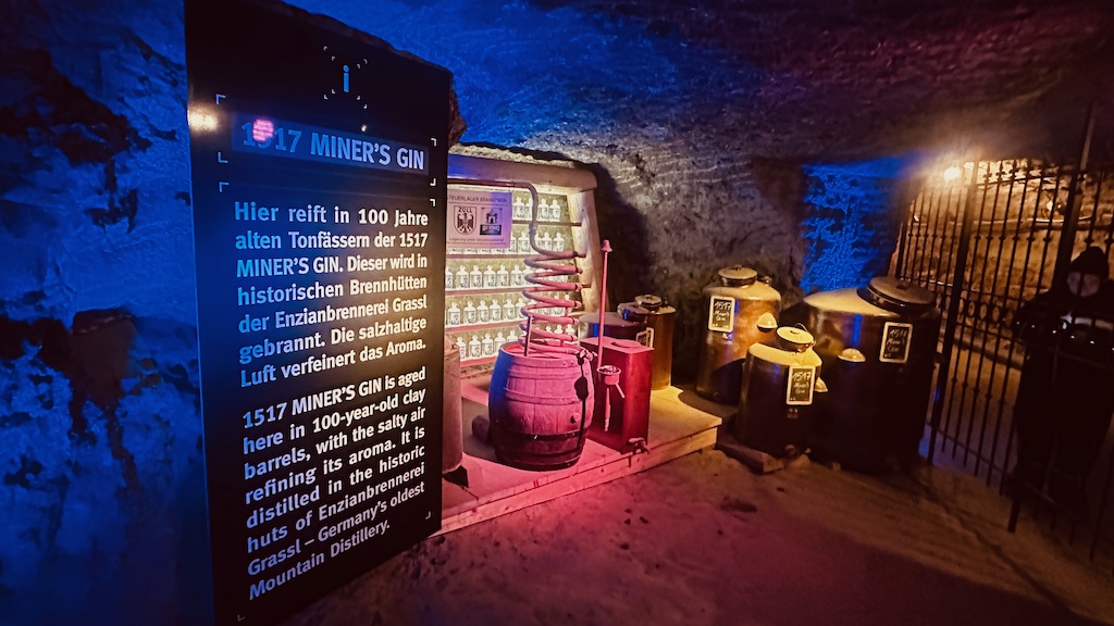2007 wurde das Bergwerk zum modernen Erlebnisbergwerk “SalzZeitReise” umgestaltet. Die rund einstündige Führung beginnt mit der Einfahrt per Grubenbahn 650 Meter ins Berginnere. Zwei rasante Bergmannsrutschen (bis zu 40 Meter Länge), eine Floßfahrt über den unterirdischen Spiegelsee sowie multimediale 3D-Animationen und Lasershows zur Salzgeschichte machen den Besuch zu einem Abenteuer für alle Generationen. Audioguides stehen in 17 Sprachen kostenlos zur Verfügung. Unter Tage herrschen ganzjährig etwa 12 Grad – ein Overall wird jedem Besucher gestellt. In 100 Jaahre alten Tonfässern reift hier übrigens auch der “1517 Miners Gin” – angelehnt an das Gründungsjahr des Stollens.