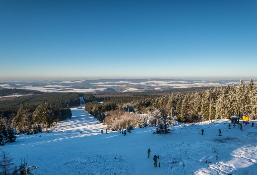 Rund um den Erbeskopf, mit 816 Metern der höchste Berg in Rheinland-Pfalz, windet sich ein Netz aus hervorragend ausgewiesenen Wanderwegen und Bikestrecken. Im Winter laden die Hänge am Besuchercenter bei entsprechender Schneelage zum Rodeln und Skifahren ein. Das moderne Gebäude am Nationalpark-Tor Erbeskopf verwaltet nicht nur einen Imbiss, sondern auch eine interaktive Multimedia-Ausstellung. Sie gewährt spannende Einblicke in den Nationalpark und darüber hinaus (Adresse: Nationalpark-Tor Erbeskopf, 54426 Hilscheid; kostenlos, Montag bis Sonntag, 9 bis 17 Uhr, ÖPNV-Anbindung per Bus; Schließtage online checken).