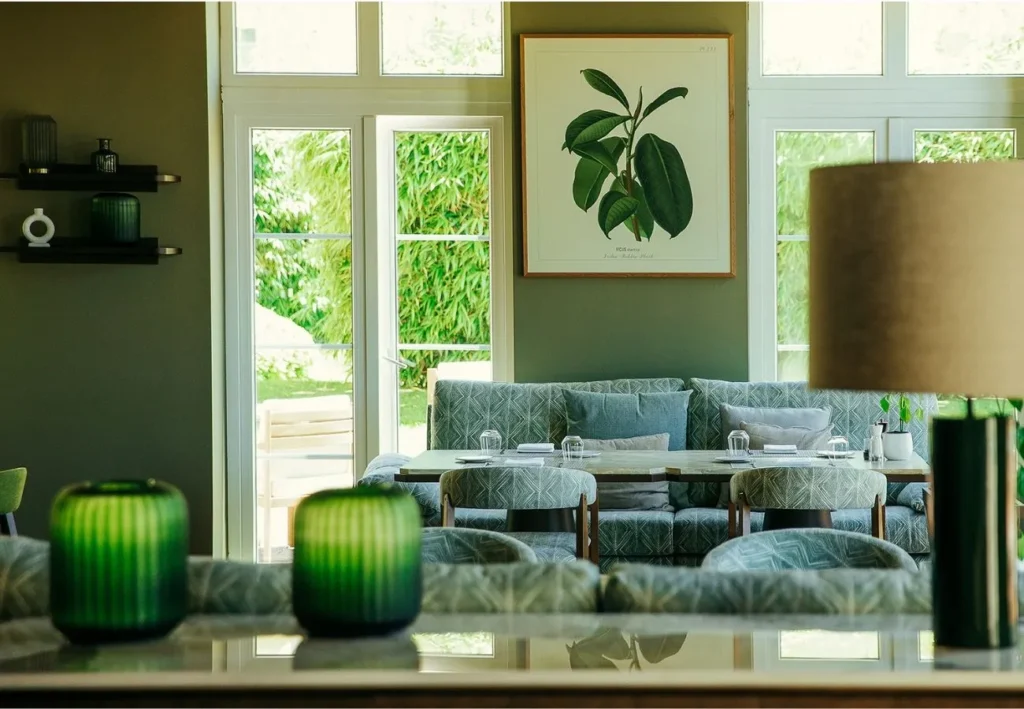 Das Anwesen fasziniert mit einer imposanten Innenarchitektur: kunstvoll gestaltete Kuppeln, fließende Stoffbahnen und großzügige Fensterfronten formen ein lichtdurchflutetes Zusammenspiel von Raum und Eleganz. Mosaike, bronzene Akzente, farbenprächtige Fliesen sowie Nuancen von Pfauenblau und Burgunderrot verleihen den Interieurs eine palastartige Aura.
