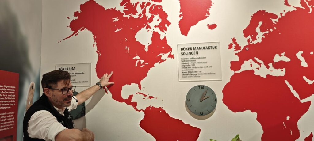 Zwischendurch geht Hajo in Anekdoten auf die internationale Historie der Marke ein: Bereits im amerikanischen Bürgerkrieg lieferte das Schwesterwerk in den USA viele Messer beziehungsweise Waffen, Schwerter oder Säbel für die Unionstruppen. Ich spüre eine Verbindung – meine Familie war Teil dieser Region, Teil dieser Geschichte – und jetzt stehe ich mittendrin.