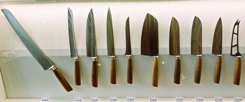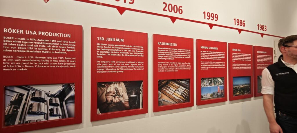 Am Ende der Führung stehe ich vor einer Ausstellung von historischen Messern – unter anderem mit dem klassischen Baum‑Logo von Böker. Ich fühle eine Ehrfurcht: Hier verbindet sich meine Familiengeschichte mit über 150 Jahren solinger Messerkunst. Das Heimkommen für mich fühlt sich so an: Als würde ich nicht nur ein Werk besichtigen, sondern meine Wurzeln erinnern.