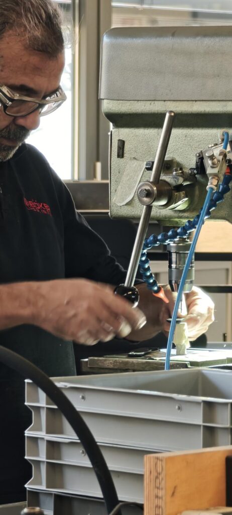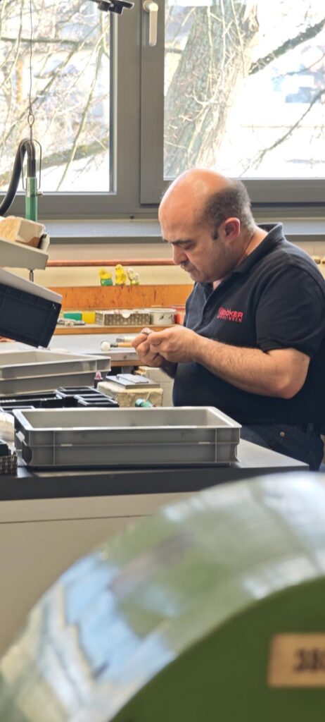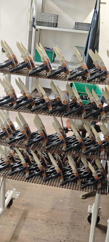 In der Produktionshalle begleitet mich Herr Hajo Wilkes, ein erfahrener Mitarbeiter von Böker, der mich freundlich begrüßt. Im Gespräch wird schnell klar: Hier verbindet sich modernste Maschinentechnik mit traditioneller Handarbeit. Hajo erzählt, dass er seit vielen Jahren bei Böker tätig ist – er war ursprünglich im Außendienst unterwegs, wechselte früher in die Produktion und kennt die Prozesse wie kaum ein anderer.
