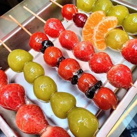 Angelina liebt gegrillte Hühnerspieße und glasierte Fruchtstäbe, aber auch Stinky Tofu, serviert mit Kimchi.