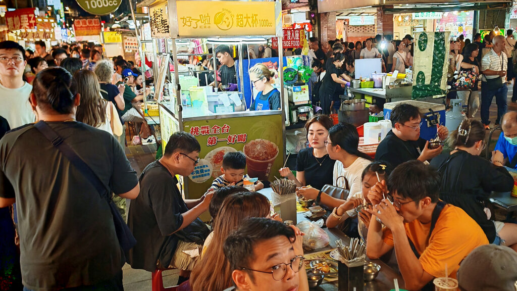 „Ihr müsst den Stinky Tofu probieren!“ Ein paar Häuserzeilen weiter auf dem Shilin-Nachtmarkt wagen wir uns tatsächlich an den berüchtigten fermentierten Tofu. Schon von Weitem irritiert er unsere Nasen. Zu unserer Überraschung schmeckt er besser, als er riecht. Wir kosten gedämpfte Kuchen aus Schweineblut mit Erdnusskruste und eine Schale köstliche Nudelsuppe. Zum Abschluss gibt es noch einen zuckersüßen Bubble Tea.