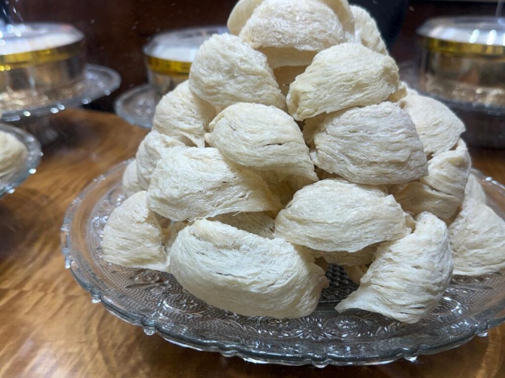 „Für unser Neujahrsfest erledigen wir hier unsere Einkäufe“, erzählt Angelina. „In der Dihua kauft man zum Beispiel Vogelnester, aus denen an Neujahr eine Suppe zubereitet wird.“ Und dann sind da die versteckten Juwelen wie das kleine Stoffgeschäft Manoirs, das wir allein nicht entdeckt hätten. Es besteht seit 138 Jahren und wird aktuell in der 5. Generation geführt. Hier wird noch von Hand genäht. Wir erstehen eine Schürze. Der Laden bietet ab 4 Uhr morgens aber auch Süßigkeiten aus eigener Produktion an – Stoffe und Süßes … Was für eine kuriose Verbindung!