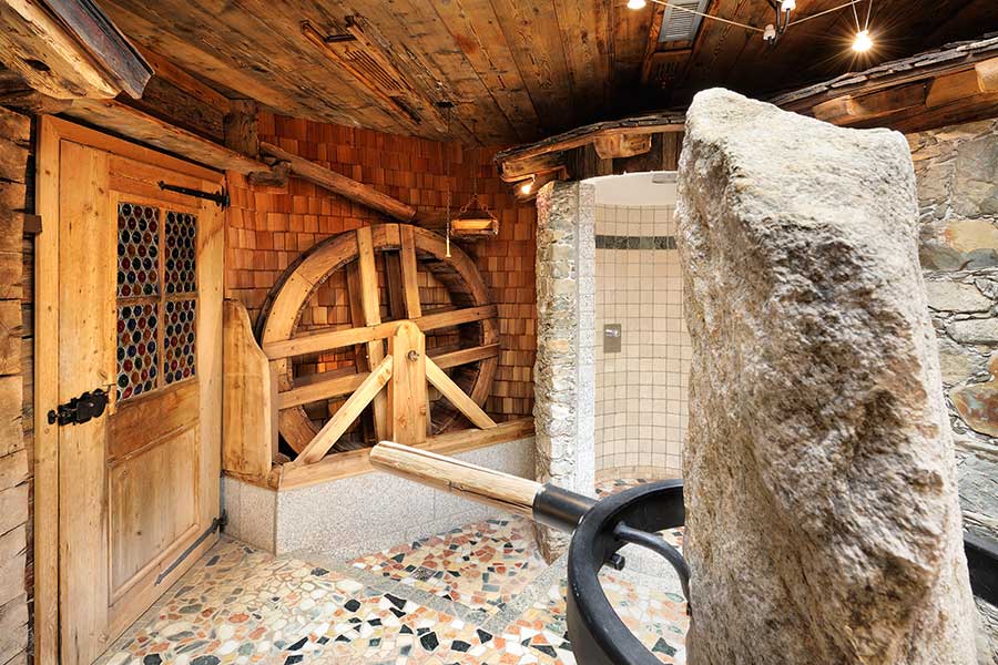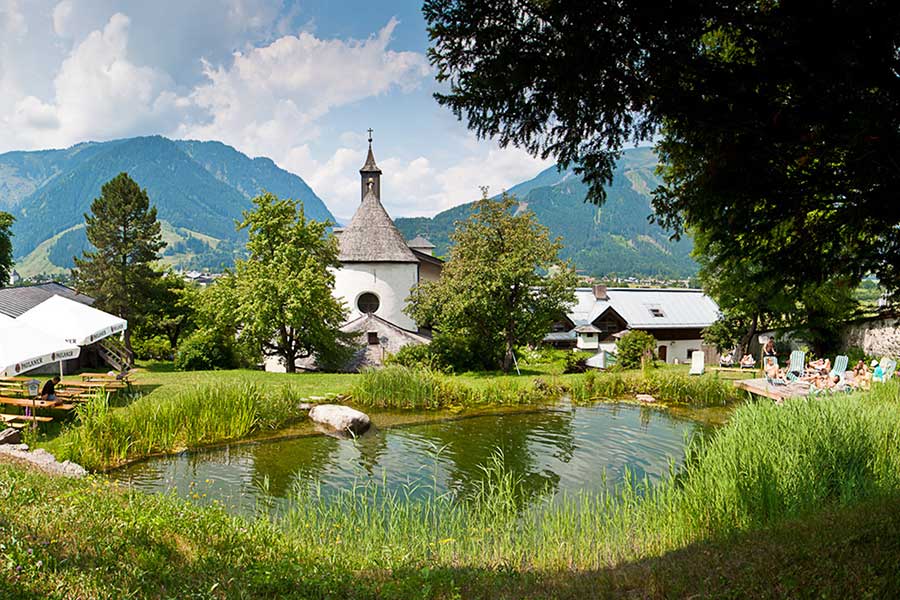 Nach einem ereignisreichen Ski- bzw. Wandertag bietet der Landgasthof Schloss Kammer seinen Gästen eine Erholung der besonderen Art – in seiner historischen Badstub’n. „Nach unserer Philosophie, schützenswerte Tradition mit Zeitgemäßem zu verbinden, haben wir eine fast in Vergessenheit geratene alpine Badekultur wieder aufleben lassen,“ erläutert Johanna Neumayer, die zusammen mit ihrem Bruder Matthias und dessen Frau Anita das Haus in die Zukunft führt. “Die Badstub’n ist ein Anbau aus altem Holz und Steinen, der mit viel Einfühlungsvermögen dem Stil unseres Hauses angepasst wurde.“ Wenn also im Steinbad der glühend heiße Kohlekorb ins kalte Wasser taucht und den Raum laut zischend mit Dampf erfüllt oder die Sauna mit ihren dicken Holzbohlen den Schweiß aus den Poren getrieben hat, dann kommt die Erfrischung unter dem eiskalten Wasserschwall des Mühlrads gerade recht, um anschließend nach frischer Luft im Freilufthof im Haferstrohbett dem Abendessen entgegenzuträumen. Dafür ist ebenfalls Gertraud Neumayer zuständig; sie versteht es, mit ihrem Küchenteam die Schmankerl der Region und aus der Pinzgauer Küche so zubereiten, dass alle Gäste ins Schwärmen geraten. Die frischen Zutaten kommen aus der eigenen,