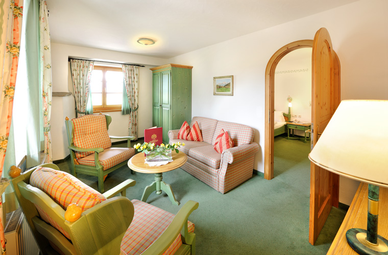kein Zimmer dem anderen. Jeder Raum ist individuell eingerichtet. Neben geräumigen Doppelzimmern bieten die unterschiedlichen Suiten genügend Raum für die ganze Familie, um sich im Urlaub so richtig entfalten zu können. Alle sind nach markanten Punkten der Umgebung benannt und heißen beispielsweise Kitzsteinhorn oder Saalachtal. Und es gibt das historische Schlosszimmer, in das sich gern Brautpaare nach der Trauung in der hauseigenen Kapelle und dem Hochzeitsmahl in der Gaststube zurückziehen. Gäste, die mehr Platz mögen, finden im benachbarten, modernisierten Bauernhaus bestimmt das passende Appartement.