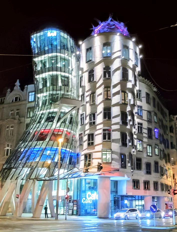 Mitten in diesem urbanen Kaleidoskop, direkt am Ufer der Moldau in der Prager Neustadt, erhebt sich das Dancing House Hotel – eines der meistfotografierten Gebäude der tschechischen Hauptstadt. Schon beim Anblick der beiden ungleichmäßigen Türme wird deutlich: Hier verschmelzen Architektur und Kunst zu einem Erlebnis. Die Geschichte des Hauses ist ebenso faszinierend wie seine Form: Auf Initiative des ehemaligen Präsidenten Václav Havel konzipierte der tschechische Architekt Vlado Milunić gemeinsam mit dem Kanadier Frank Gehry das Gebäude, das vor 30 Jahren fertiggestellt und 2016 als Hotel eröffnet wurde. Das Dancing House, auch bekannt als „Fred und Ginger“, interpretiert die Bewegung des Tanzes architektonisch und prägt das moderne Stadtbild Prags nachhaltig.