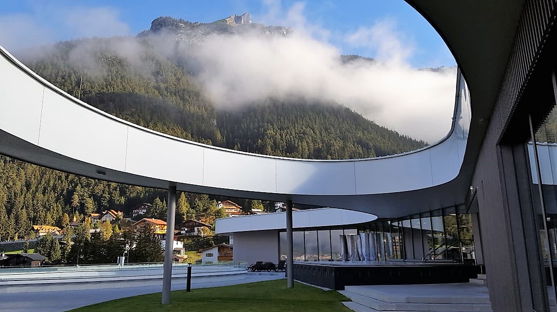 Ein hochmodernes Badehaus mit einem fünundzwanzig Meter langen Sportbecken und einer versenkbaren Decke für Veranstaltungen setzen im Hotel Der Wiesenhof seit 2016 neue Maßstäbe.