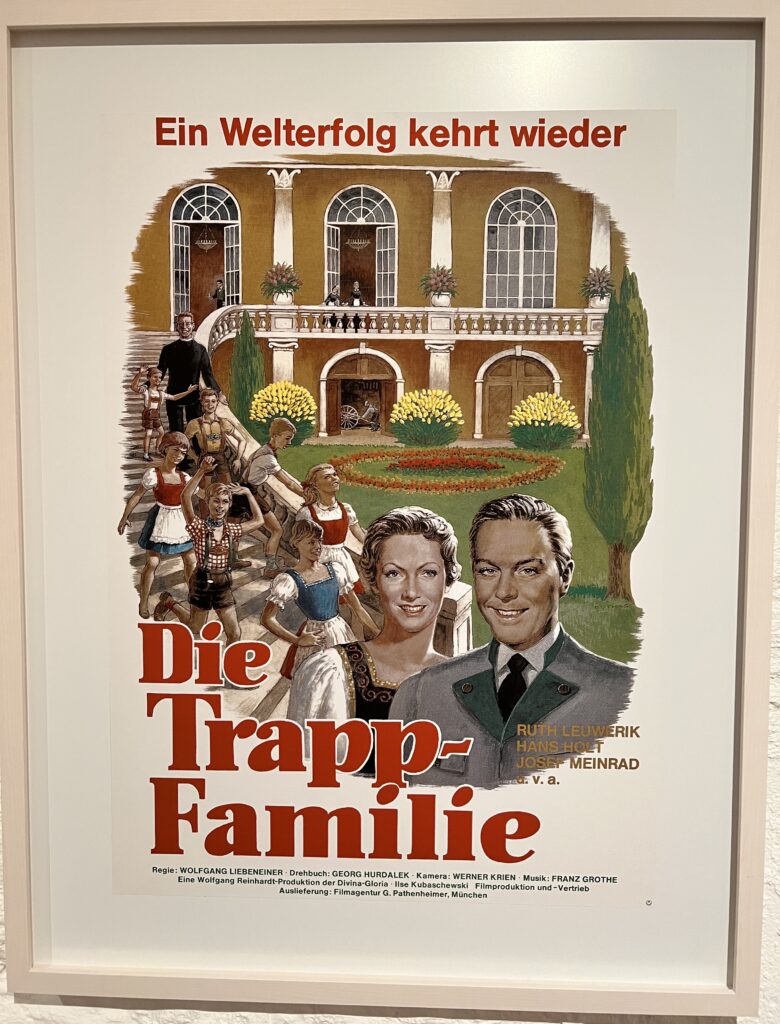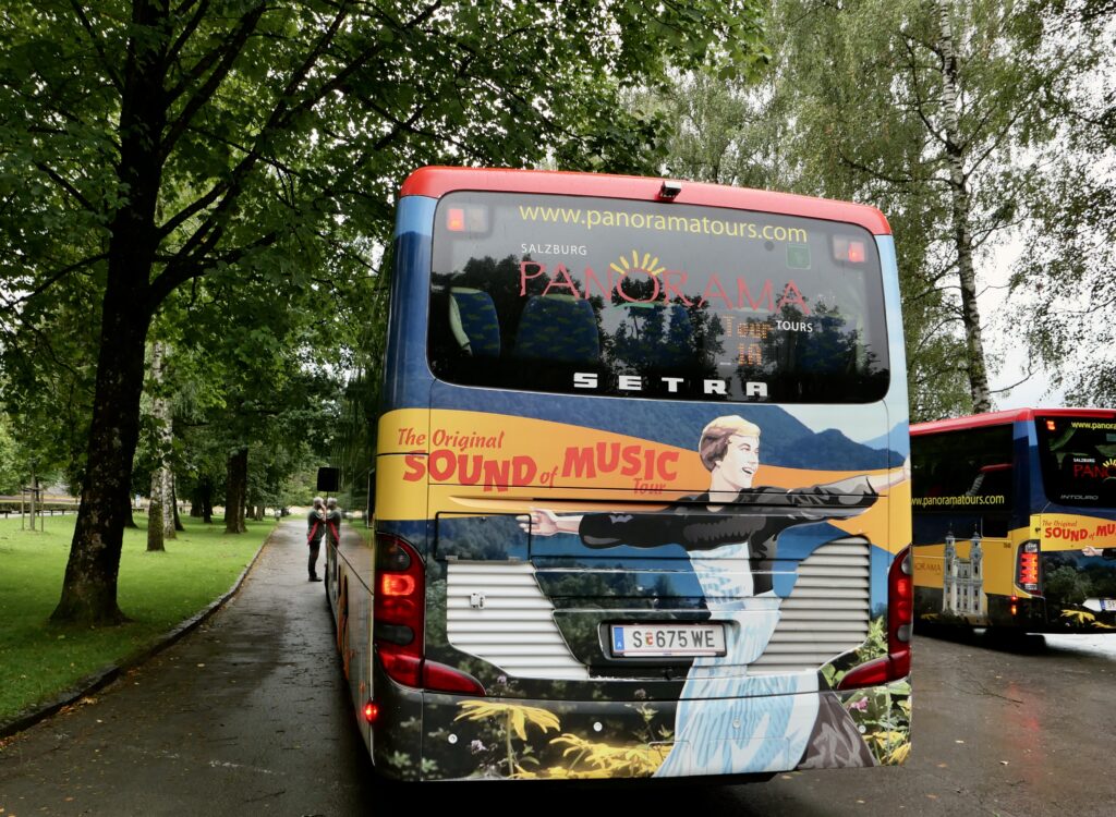 Salzburger Schnürlregen prasselt vom wolkenverhangenen Himmel, als wir in einen der drei knallbunten Busse steigen, die für die vierstündige Tour bereitstehen. Fast alle Plätze sind bereits besetzt. Vor allem Amerikaner sowie einzelne Australier und Neuseeländer und sogar ein junges Paar aus Japan sind an Bord. Auch die Europäer im Bus kommen aus englischsprachigen Ländern. Sobald sich der Panoramabus in Bewegung setzt greift Reiseleiter Mitch zum Mikrofon und gibt auf englisch mit australischem Zungenschlag einen kurzen Überblick in die Trapp-Filmgeschichte. Auslöser für die zunächst deutsche Verfilmung mit dem Titel „Die Trapp-Familie“ war die Autobiografie der Maria Trapp. Das spätere Broadway-Musical „The Sound of Music“ war allerdings deutlich erfolgreicher. Übertroffen wurde es noch vom gleichnamigen Film. Julie Andrews spielt darin die lebenslustige Novizin Maria, die als Kindermädchen in die Familie Trapp zum verwitweten Marineoffizier von Trapp, gespielt von Christopher Plummer, geschickt wird. Mit ihrem musikalischen Talent fördert sie die sieben Kinder, verliebt sich in deren Vater und heiratet ihn. Bald darauf folgt die Flucht vor den Nazis in Richtung USA. Über drei Stunden zieht sich der von Musik und Tanz und ausgedehnten Landschaftsaufnahmen begleitete Film hin. Ein wahrer Blockbuster, der nicht weniger als fünf Oscars eingeheimst hat und sich nach sechs Jahrzehnten weltweit ungebrochener Beliebtheit erfreut. Nur in Deutschland und Österreich scheint das Interesse eher gering zu sein.