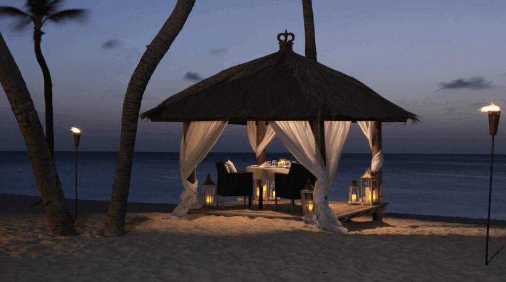 Im Bucuti & Tara Beach Resort können Gäste nicht nur direkt am Meer ein privates Dinner genießen. Hier, an der breitesten Stelle des Eagle Beach lohnt es sich auch, sich nachts einen Liegestuhl zu reservieren und in den Himmel zu schauen. Vielleicht lässt sich eine Sternschnuppe blicken.