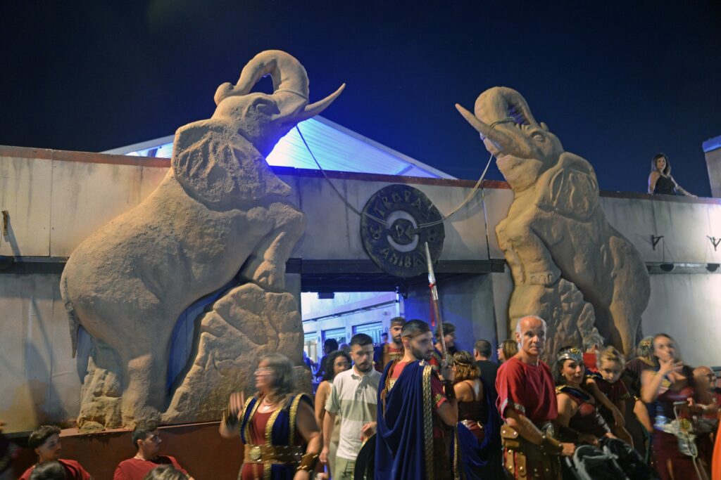 Nach einem Tag der Schlacht und des Feldzuges verdient jeder Krieger und jeder Elefant eine kleine Pause. also habe ich abschließend die Deutschen zum festlichen Lager geführt, gleich neben dem modernen Fußballstadion gelegen. Hier stellen die Truppen und Legionen in ihren Hütten ihre schönsten Kleider zur Schau, um wie ein Römer den Durst zu löschen oder wie ein Karthager bis zum Morgengrauen zu tanzen.