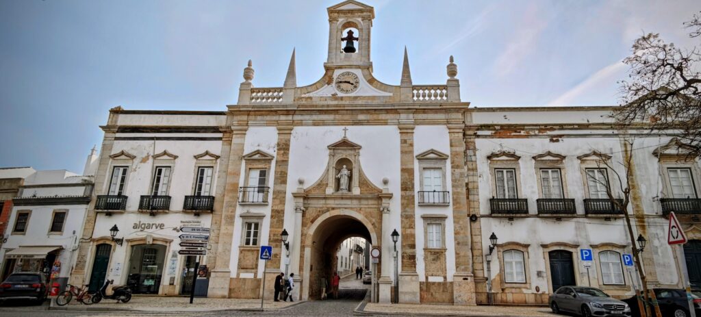 Die Altstadt von Faro, die Cidade Velha, empfängt mich mit kopfsteingepflasterten Gassen, weißen Häusern und Bougainvillea, die bereits erste Farbtupfer setzen. Durch ein altes Stadttor trete ich in eine Welt, die zugleich ruhig und lebendig wirkt.