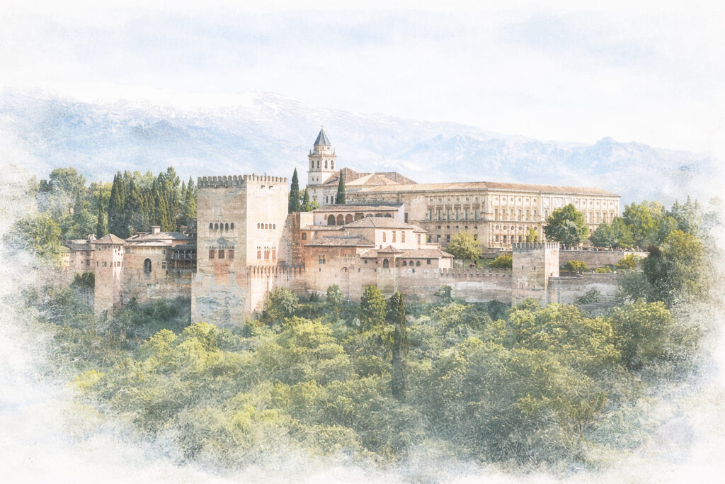 Mit rund 2,7 Millionen Besuchern jährlich ist die Alhambra das meistbesuchte Monument Spaniens – und das einzige vollständig erhaltene maurische Palastensemble der Welt. Gebaut vom Nasridenreich im 13. und 14. Jahrhundert auf einem Hügel über Granada, ist es kein einzelnes Gebäude, sondern eine ganze Stadtanlage: Palastflügel, Gärten, Befestigungsanlagen, alles von rotem Sandstein, alles mit Blick auf die schneebedeckte Sierra Nevada.