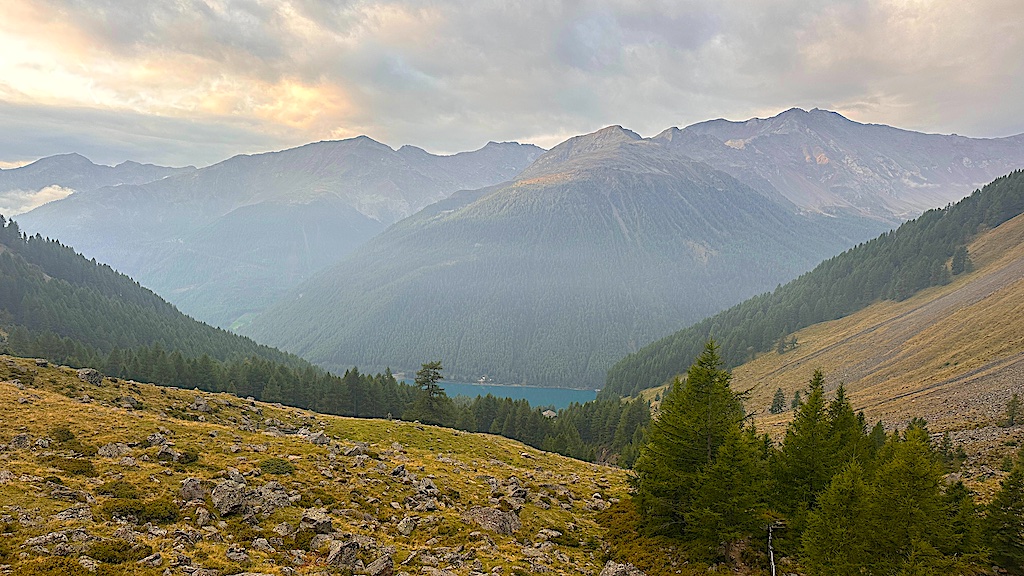 Am Morgen um Sieben ist meine Welt noch in Ordnung. Die Sonne klettert gerade über die Gipfel im Schnalstal bei Vernagt und verleiht dem dortigen Stausee eine wunderschöne tiefblaue Färbung. Von der Staumauer auf rund 1700 Metern aus bin ich über eine gewundene Asphaltstraße gestartet, zunächst bis zur Jausenstation Tisenhof. Gleich dahinter führt hinter einem Kuhgatter ein Pfad in einer nur zu Beginn noch leichten Steigung durch einen lichten Lärchenwald und das Tisental hinauf. Die Landschaft öffnet sich bald oberhalb der Baumgrenze und der Weg zieht sich durch Almwiesen in Richtung meines Ziels, der Similaunhütte, die auf 3.019 Metern am Niederjoch zu Füßen des Similaun-Gipfels (3.606 m) liegt.