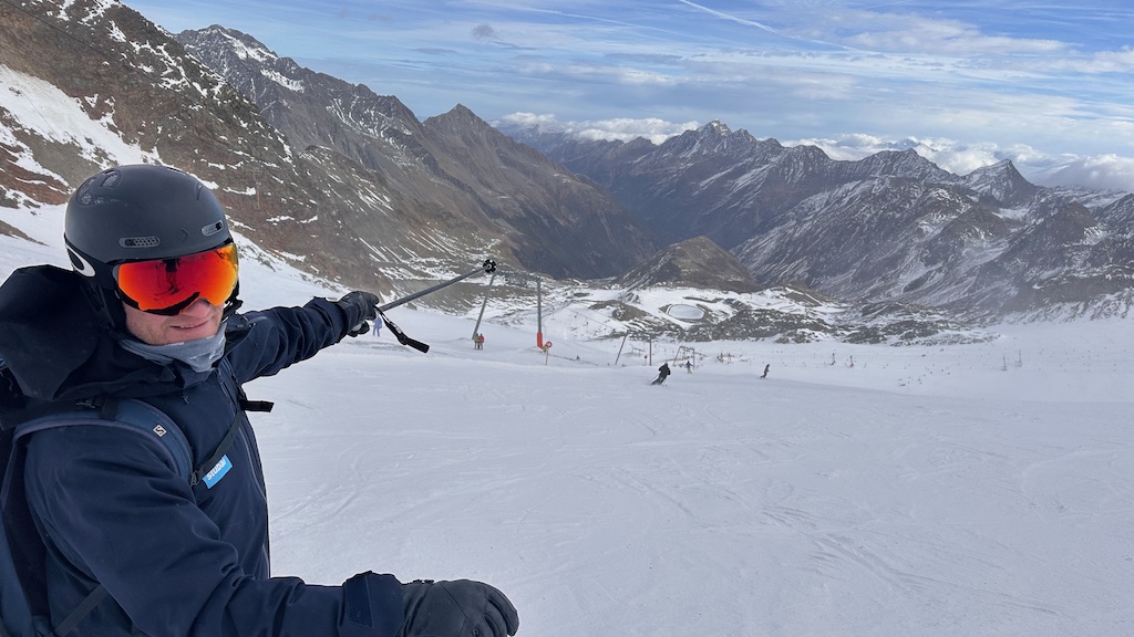 „Die Höhenlage ist unser absolutes Highlight“, sagt Michael – und muss auch ein wenig durchschnaufen. Und über 3.000 Metern öffnet sich das Gletscherskigebiet wie eine weiße Bühne: weite Pisten, Freeridehänge im Powder Department und gastronomische Vielfalt – vom Selbstbedienungsrestaurant bis zum Gourmetlokal Schaufelspitz.