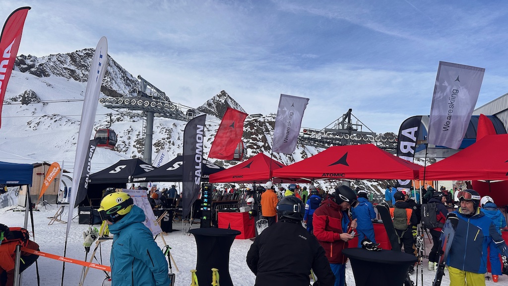 Am Eisgrat probiere ich wie zahlreiche andere Wintersportler die neuesten Ski- und Snowboardmodelle von mehr als 20 Marken. In der Testarea auf 2.900 Metern Höhe sind Schnee und Testvergnügen garantiert: Namhafte Ski- und Snowboardmarken wie Atomic, Fischer, Head, Salomon, Völkl, Faction, Nidecker und Jones präsentieren ihre Wintersportprodukte für die Saison 2025/26. Für eine gute Stunde darf man immer mit den Brettln seiner Wahl unterweg sein.