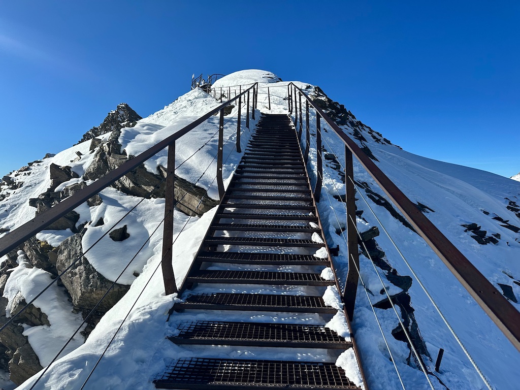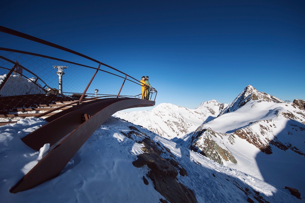 Dann schnallen wir die Skier ab. Denn ganz oben, fast am geografischen Ende des Stubaier Gletschers führt ein spektakulärer Aufstieg über 250 Stufen zur Aussichtsplattform „Top of Tyrol“ – auf 3210 Metern über dem Meeresspiegel. Der Lohn der Anstrengung: Ein unschlagbarer 360-Grad-Panoramablick über die umliegende Bergwelt, einschließlich 109 majestätischer Dreitausender-Gipfel.